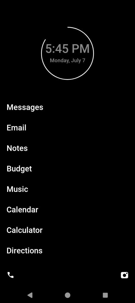 - I installed a minimal launcher on my smartphone. Being an Android user, I installed an app called O Launcher, which effectively took over my phone’s home screen and replaced the app icons with a list of text links. The launcher also has fairly robust settings options allowing you to create intentional delays in opening certain apps, or timers that limit how long you can use an app within a day. The launcher also allows you to “hide” apps to make them harder to access. While I initially started out with timers on some apps, I personally found them aggravating, so I ended up disabling them. However, the uniform look of the app links on my home screen and the ability to “hide” some apps has introduced just enough friction that it’s been a helpful tool in reducing my temptation towards my phone.