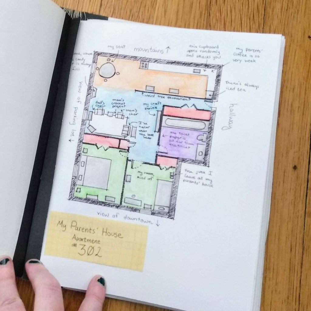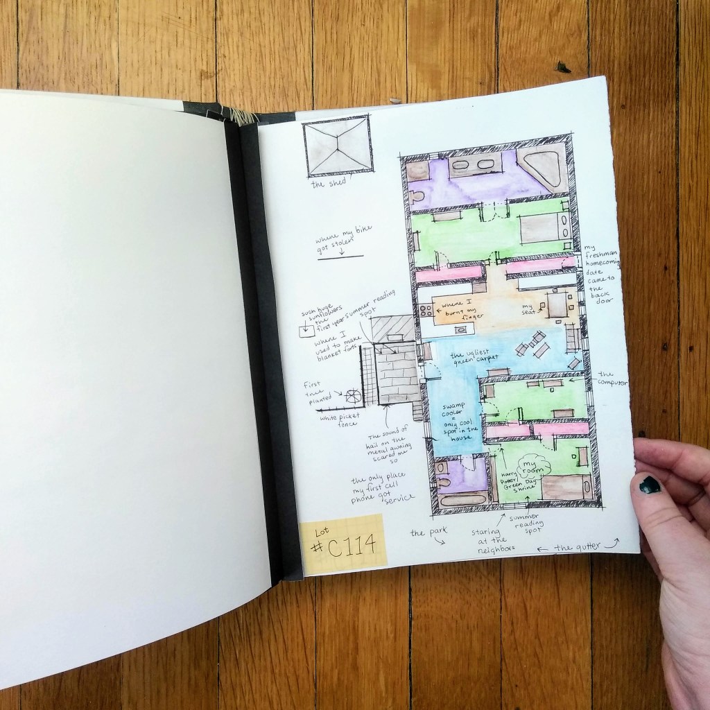 5″ x 7″ – buttonhole bound book featuring hand drawn mental maps of everywhere I’ve ever lived