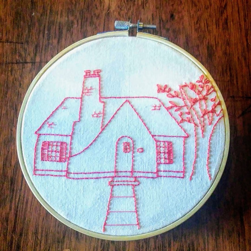 My grandmother taught me to embroider when I was six. Sewing, crocheting, quilting, and embroidery surrounded me my entire life. I was an adult before I picked any of it up for myself, but it always feels like my greatest connection to my artistic roots. (And yes, I have a thing for houses.)