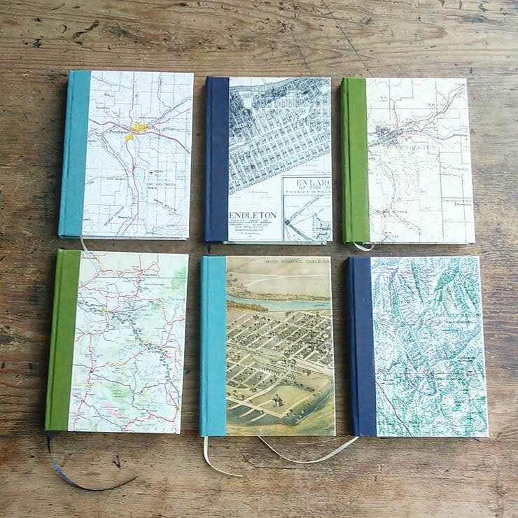 5″ x 7″ – series of case bound journals featuring historic maps of Pendleton, OR region